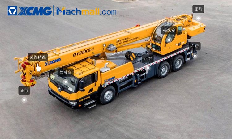 XCMG 25 ton truck crane QY25k5-II is the product with high reliability inheriting XCMG classical and advanced technology aboutdesign and manufacture truck crane of many years and based on mature technology.